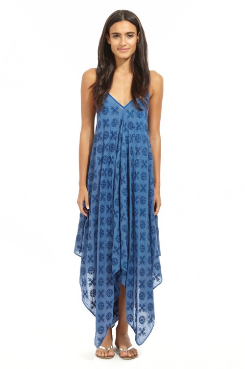 The scarf dress features elastic spaghetti straps and angled hem - simply slip on and breeze through the day (or night) in style.