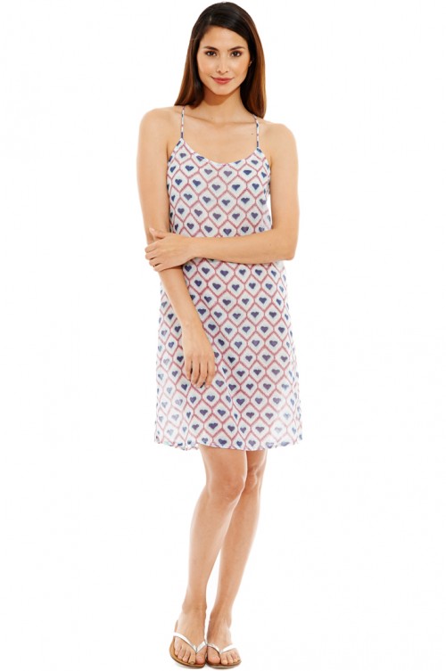 Itís fair to say we are head-over-heels for Ikat patterns, a nearly universal weaving technique. Ikat Love is a play on this tradition with a splash of color and adorable heart motif. Wear it to the beach, layered under a dress, or even to bed! The Nevata slip is truly versatile. This style features a slim fit, adjustable straps, and falls above the knee.
