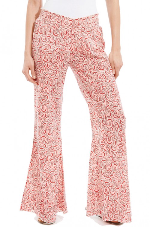 The flare leg pant features shired waist and wide pant opening.