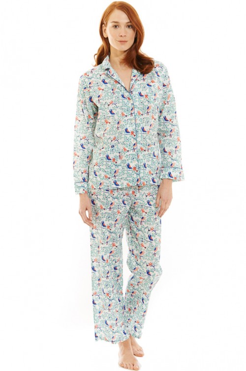 Birds of a feather stick together - no truer is that statement with our Tophat print, featuring exotic birds perched in their natural habitat. Each garment is printed by hand by local artisans, who create one of a kind garments through a traditional block printing process. Our loungewear set features a pull on top with long sleeves and button up front, with matching full-length pant with covered elastic waist.