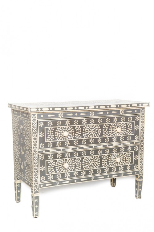 Take a trip to exotic lands with our furniture collection. From traditional craftspeople around the world comes expertly crafted pieces that add dimension and a touch of luxury to any home. The inlay technique of our bone and mother of pearl furniture pieces has been practiced in Jodhpur for centuries. Our lamps, hand painted and block printed in our signature prints, add a modern touch to the collection. More than just accent pieces, these handcrafted pieces set the tone for the entire home.DIMENSIONS: 20 D" x 42W" x 34H"Please note, this item is only available at the following Roberta Roller Rabbit store locations:176 Duane St. New York, NY 10013212.966.00761019 Lexington Ave New York, NY 10021212.772.720021 Main Street East Hampton, NY 11937631.329.582853D Jobs Lane Southampton, NY 11968631.259.2566103 Greenwich Avenue Greenwich, CT 06830203.869.1969