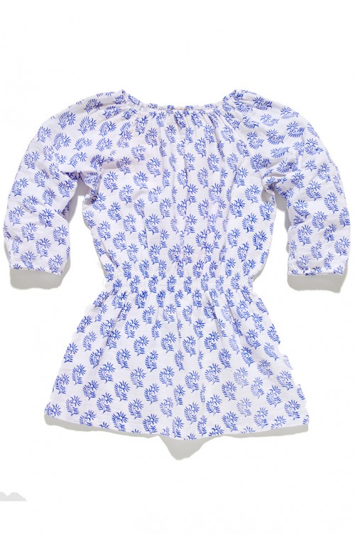 We have mixed European influenced prints with Roberta Freymann's signature touch of exoticism and mystique to create a soft, delicate and feminine floral print that will complement any outfit. This print has been wood block printed by hand to create definition and to bring out the detail in the flower. The Tai dress features raglan sleeves with elasticized waist, neckline and cuffs for movement.