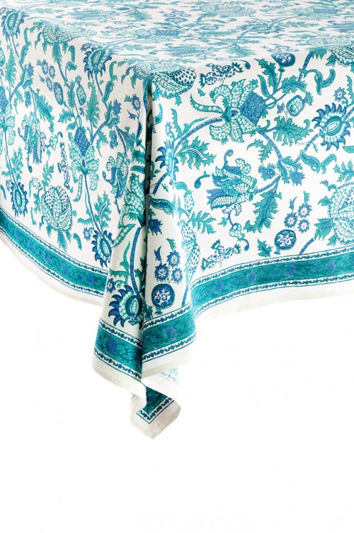 Dress your table up or down with our wonderfully colorful, signature block print tablecloths. Each has a different complimenting border come in variety of colors and prints to choose from. Complete the look with our napkins and placemats. 100% cotton. Machine wash.