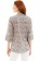 The Arles shirt features center front pleating, a deep V-neck with one fabric button, a mandarin collar, three-quarter length sleeves, and a flowing and flattering cut.