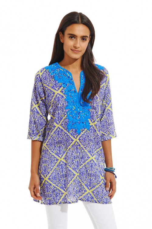 We turned our classic kurta up a notch with the Inez kurta, which features metallic Aari slub cotton embroidery to create a lovely sheen, and facing cross stitch detailing.